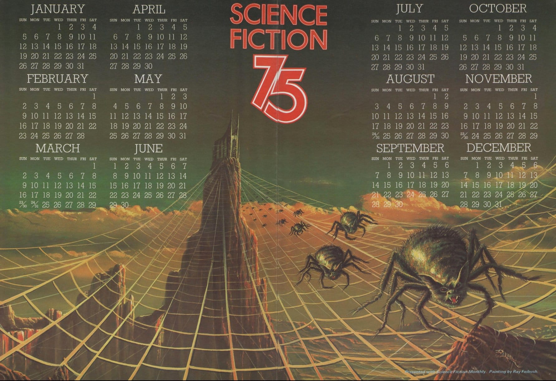 Here's Science Fiction Monthly's 1975 calendar, complete with Ray Feibush artwork.