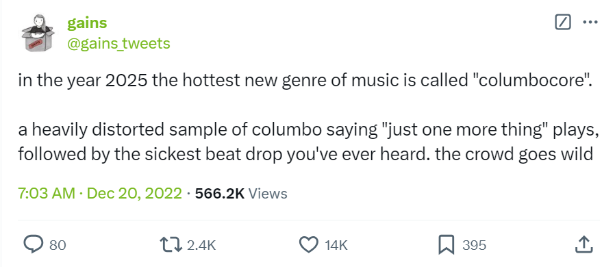 I made this YouTube playlist of anything even tangentally related to Columbocore a while back... the first video is the best one, you should at least check it out. I'm still hoping this genre takes off like Hit Em did.