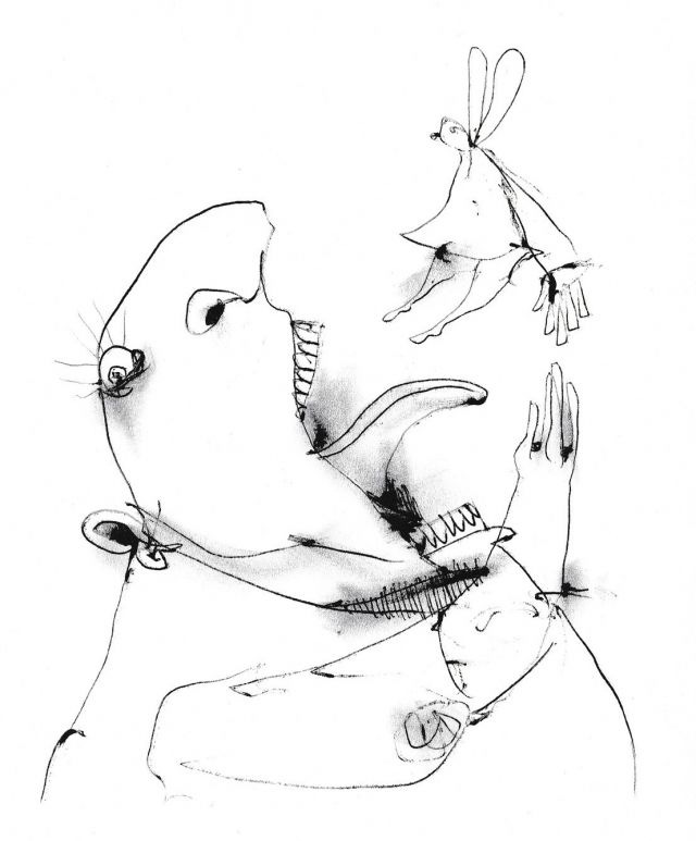 We used the Disney cartoons to suggest the aseptic, oppressive sexuality in the Duck family, the way third-world natives were depicted as savages and idiots, the way riches were never produced by workers but always by investors, and how villains were portrayed with racial bias. In this realm, female Ducks are flirtatiously worried about their beauty, yet strangely asexual (Daisy: “If you teach me to skate this afternoon, I will give you something you always wanted.” Donald: “You mean …?” Daisy: “Yes … my 1872 coin.”) And the model jobs for the Duck nephews when playing a game at school about the adults they want to become: “I’d like to be a banker!” says Dewey, echoed by Huey: “I’ll pretend I’m a big landlord with lots of land to sell.” Or take the witch doctor who brags about his nation being modern because “Gottee telephone. Only trouble is only one has wires. It’s a hot line to the World Loan Bank.”