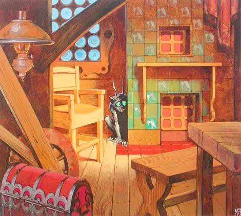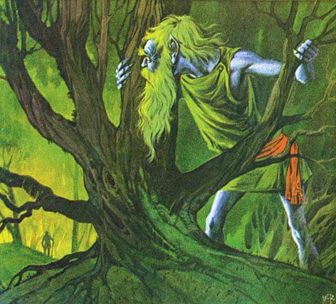Some of the creatures remind me of McBride's Lord of the Rings fantasy art. Here's the Leshy (or Leshi), a forest guardian deity from Slavic mythology, along with a domovoy, a Russian household god.