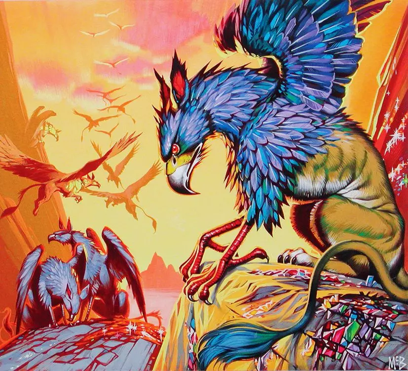 What makes a mythical McBride stand out to me? Bold color choices, judging from this set of gryphons.
