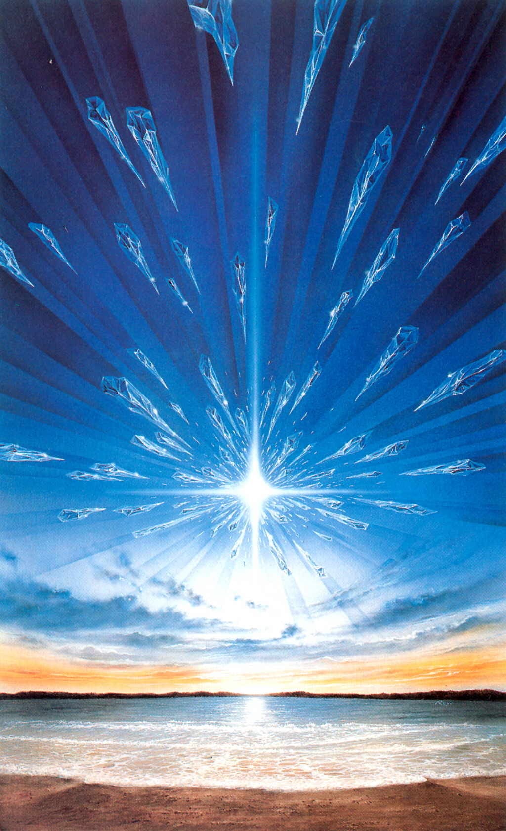 This artwork also appears in the 1994 Tim White Fantasy Art Trading Cards with the title "Stars Like Dust," which seems to imply that it was used for the cover to an edition of the Asimov book with the similar title, but I couldn't actually confirm that. I can confirm that it is very blue.