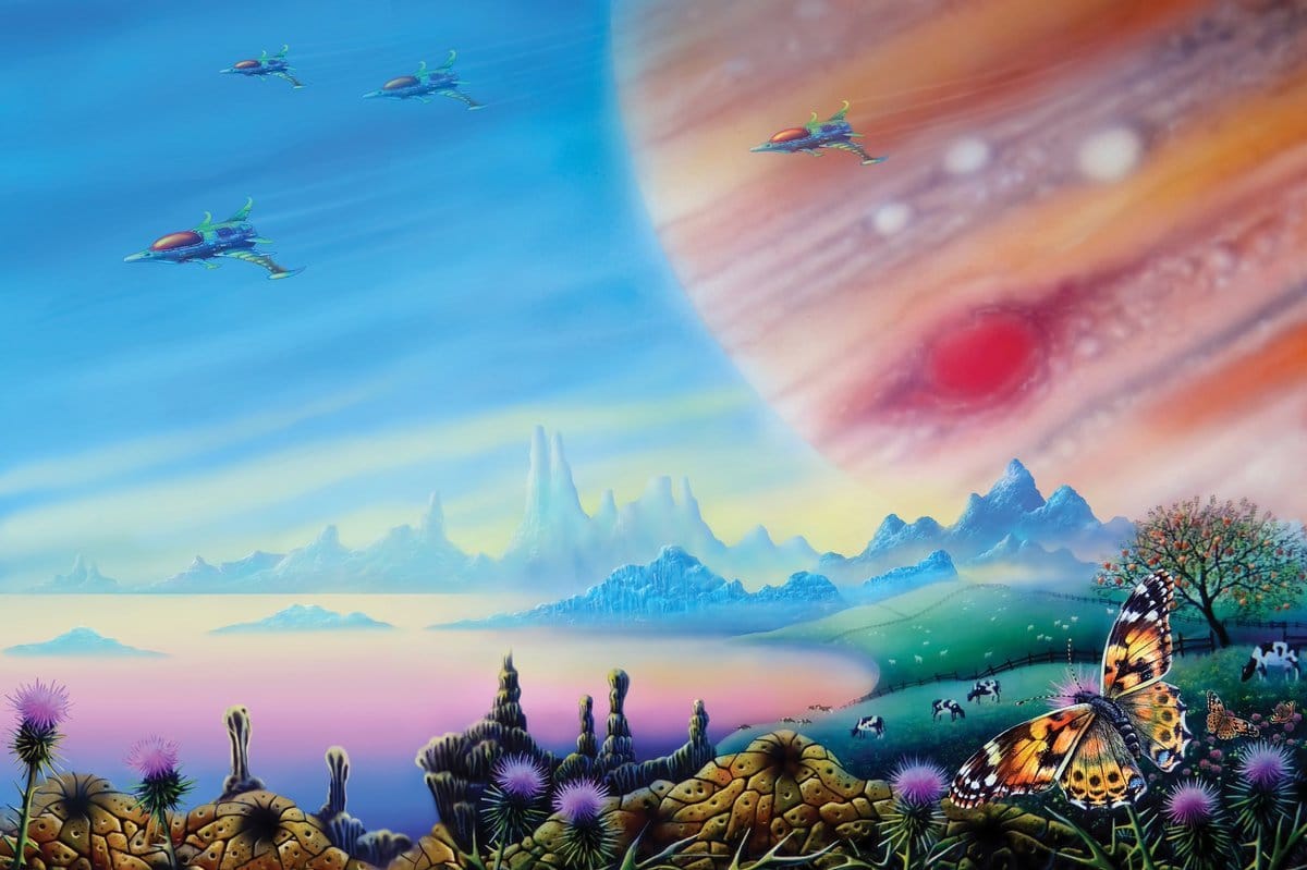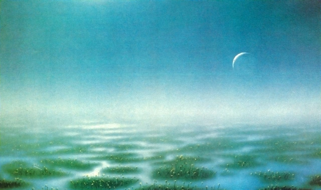 Schaller was a space artist who contributed art for Carl Sagan's 1980 Cosmos TV series. He also passed away in August 2024, which I discovered while looking up that image just now. Here's another one from the guy.