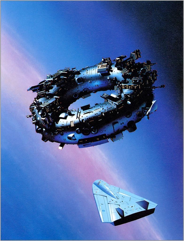 Here's a great blue sky from Michael Whelan, who coincidentally has recently joined Bluesky. This one was the 1988 cover to The Smoke Ring, by Larry Niven.