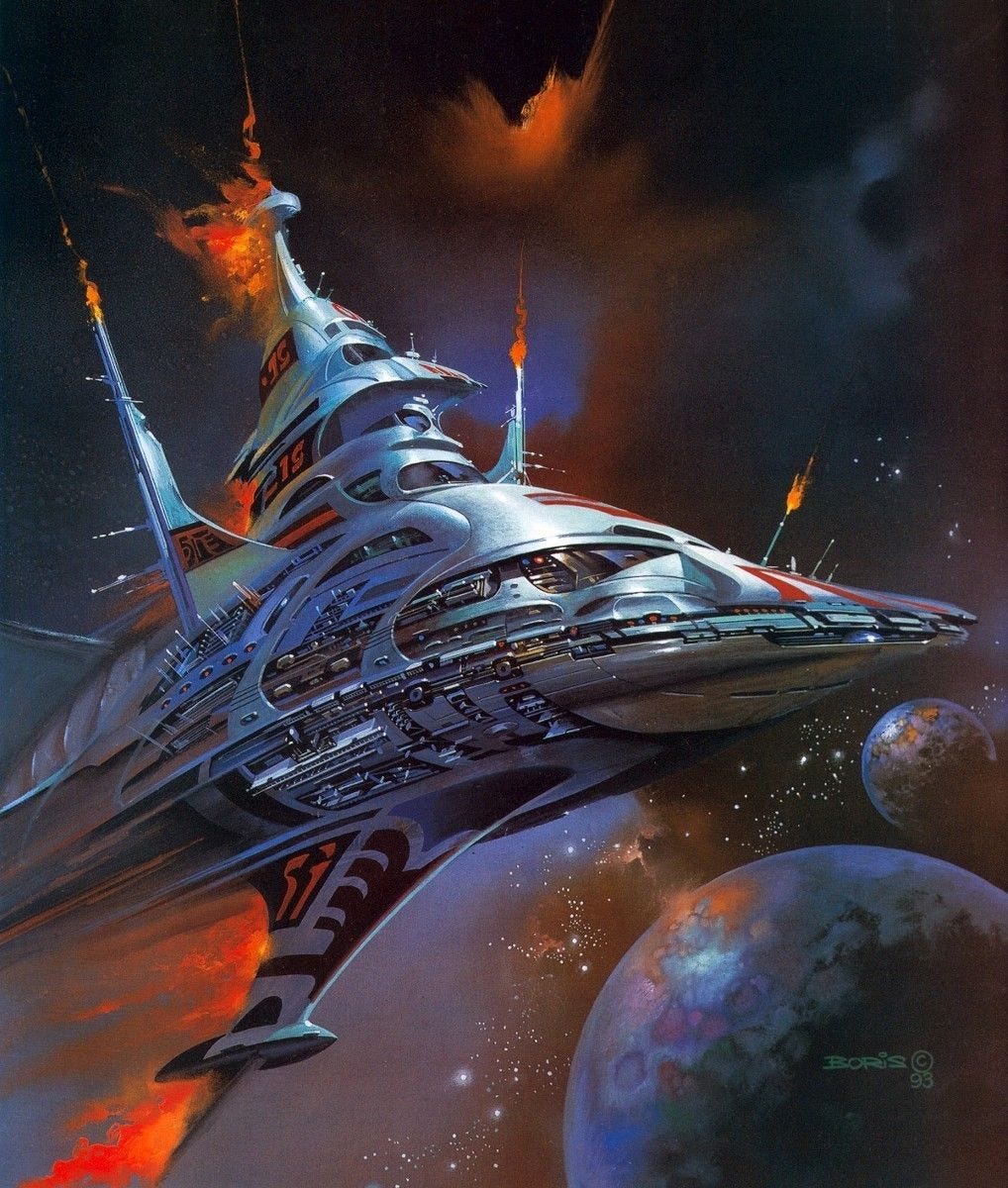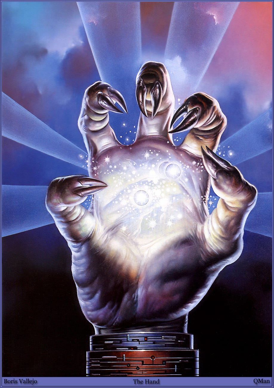 Page 80: “The Hand,” undated. Vallejo “A simple but very successful idea for which Boris claims little credit, because he was presented with the concept and just asked to bring it to life.” (It’s not mentioned in the book, but this was used as box art for the video game Star Control)