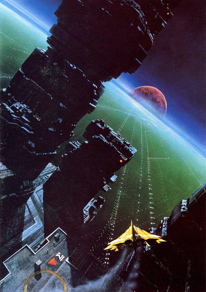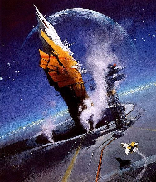 I have a terrible habit of confusing John Berkey and John Harris, partially because of those first names, and partially because they both have similar styles: Impressionist spaceships.