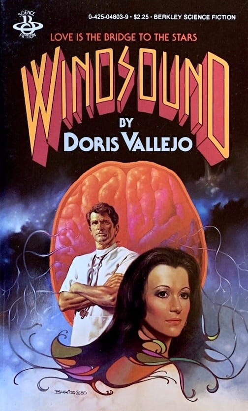 This 1980 Boris Vallejo cover marks one example of the medical theme including a big pulsating brain in the background of Windsound, a novel written by his first wife, Doris Vallejo.