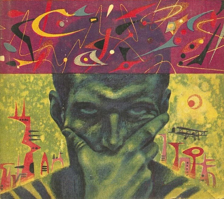 Surrealist artists love the symbolism that brains carry, so it's no wonder Gary Viskupic has one on his 1978 cover art for Alfred Bester’s The Demolished Man -- a novel that explores the societal impact of a world with telepaths in it.