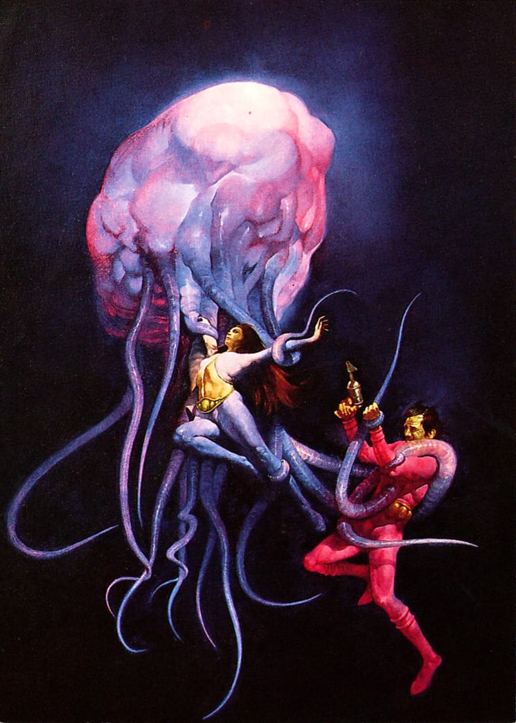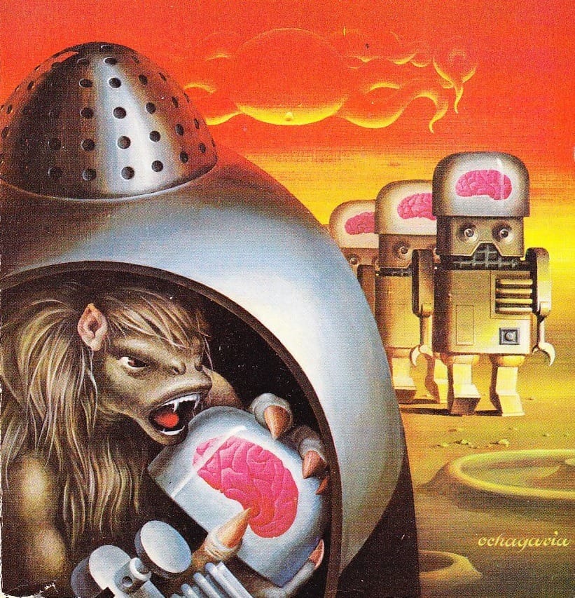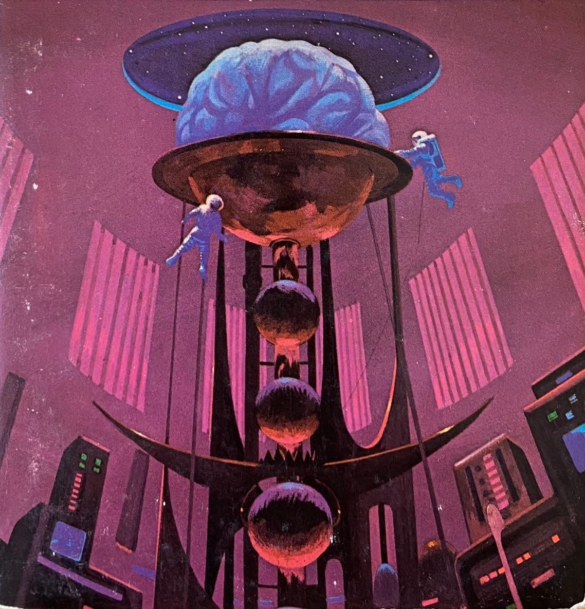 Sanjulian named this artwork "Brain Death," which is a good reminder for me that I need to do an entire post on science fiction's long relationship with the concept of puns.