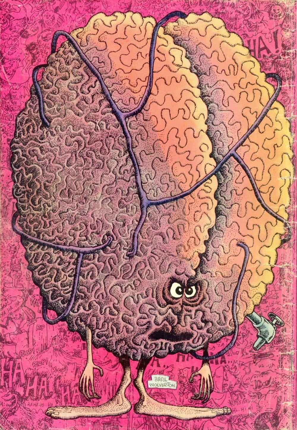 Even underground comics artist aren't immune to the need to depict a brain, as Basil Wolverton's 1974 back cover to Plop! #7 confirms.