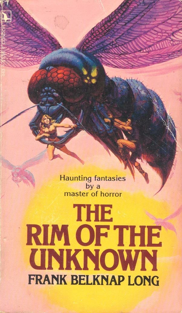 I'll leave it up to you how much love is actually happening. Does the giant fly on Ken Barr’s 1978 cover to Frank Belknap Long’s The Rim of the Unknown actually love that woman? Probably not.