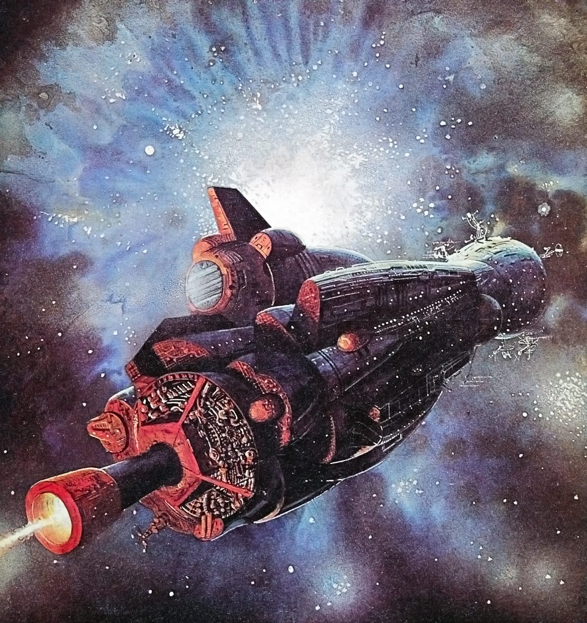 Other painters took a less eye-popping approach, like this Bob Layzell spaceship from Harry Harrison’s Mechanismo, 1978: