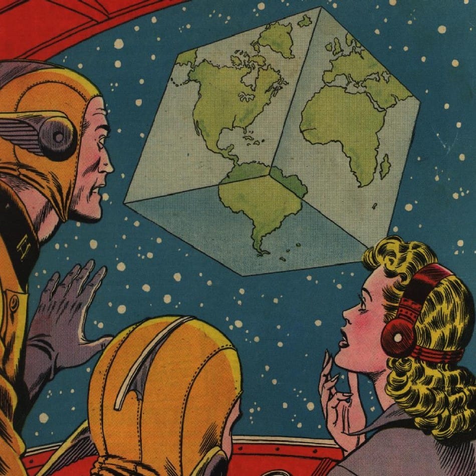 It's by Murphy Anderson, done as cover art for Mystery in Space #22, Oct 1954, to illustrate "The Square Earth," written by Otto Binder.