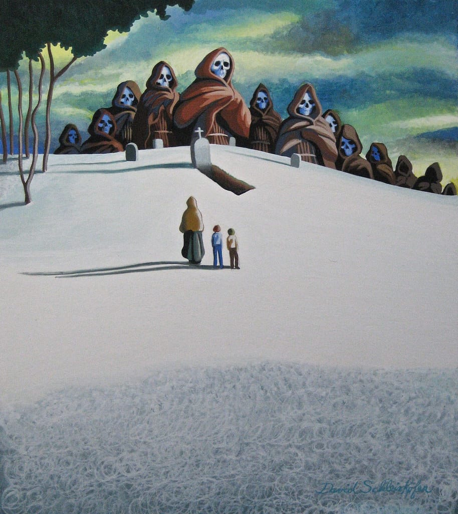 Many of these images are taken from Schleinkofer's Flickr account, where he has uploaded a lot of art along with some brief descriptions. Some of these artworks can't be found anywhere else: Here's a haunting early 1970s sample illustration.
