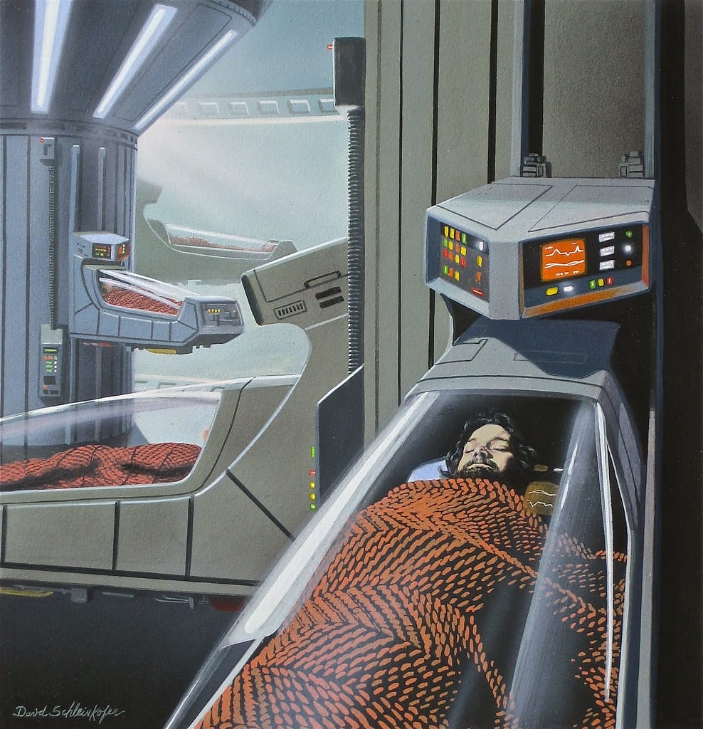 It's a magazine illustration, and one of the Schleinkofers that I tried getting into my art book, for my two-page spread on cryosleep. My caption would have argued that cryosleep has never looked cozier.