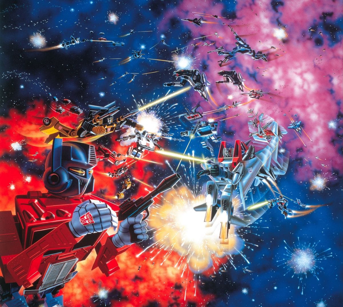 This 1984 Transformers Generation 1 back box art is apparently "the Mona Lisa of a generation of toy robot loving kids," according to this charmingly lo-fi 2013 Usenet interview with Schleinkofer that I found through downthetubes.
