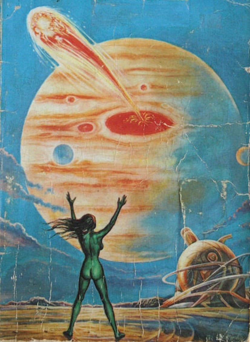 As you might have noticed from the last few issues, I like using this newsletter to package up tiny, bizarre sub-sets of the much wider retro sci-fi art world. Challenging myself to spend an entire newsletter on something as silly as illustrations of giant teeth or fantastical crucifixions keeps me entertained while giving me a reason to feature lesser artists and research new stories.