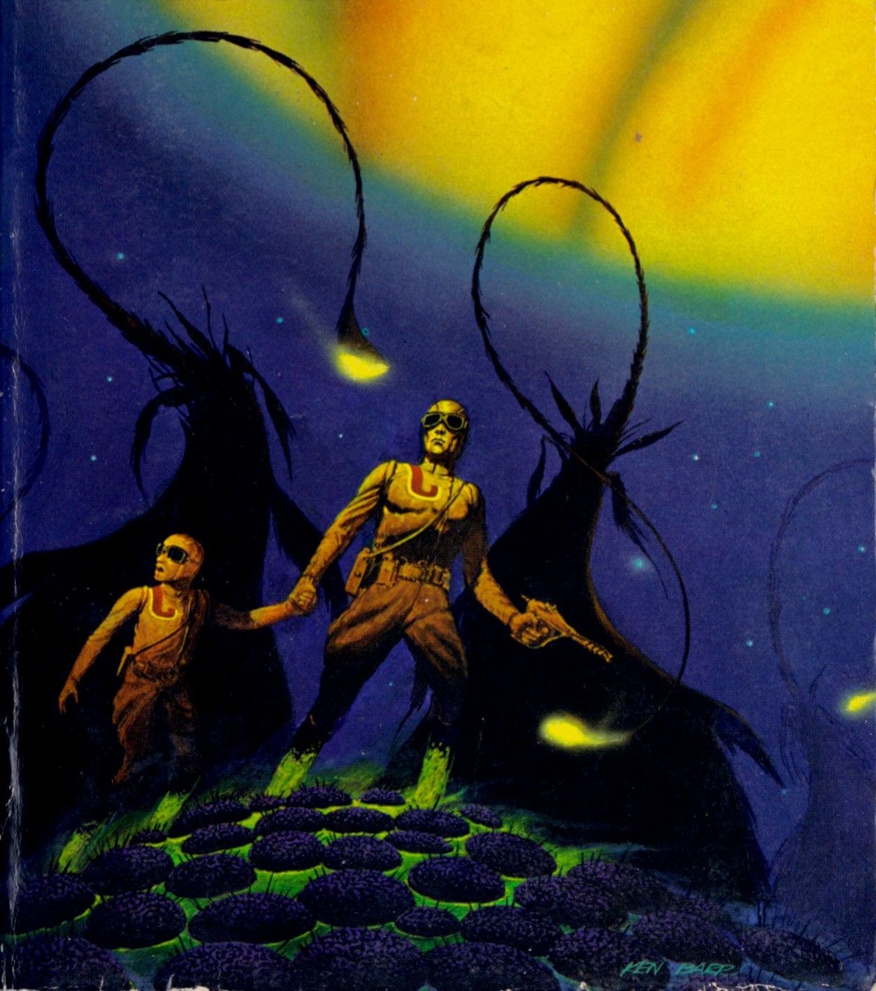 Nighttime is a rarer concept on ‘70s science-fiction covers than one might think. Perhaps publishers’ common mandate to keep things colorful dissuaded artists from the idea. Maybe it was confusion over whether “night” even exists on a planet where rotation speed, light sources, and atmosphere don’t match Earth’s. Still, it’s easy to see the quiet beauty in a silent alien night, when what you don’t see matters as much as what you do.