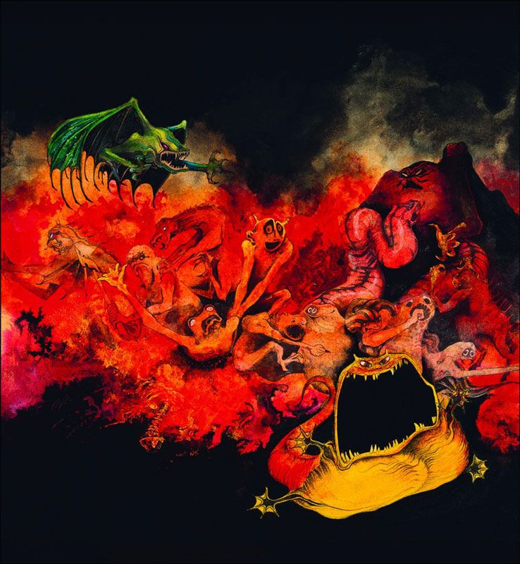 He often blends these interests—a 1972 cover to Midnight Sun’s album Walking Circles features a skeleton sitting on its own prehensile tail in a particularly outside-the-box application of Dean’s furniture design degree.