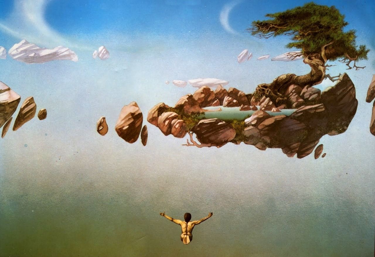 Placid, geologically imaginative record covers are what UK artist Roger Dean is best known for, particularly his work for the prog rock band Yes, who he has continually created posters, brochures, and stage installations for since late 1971.