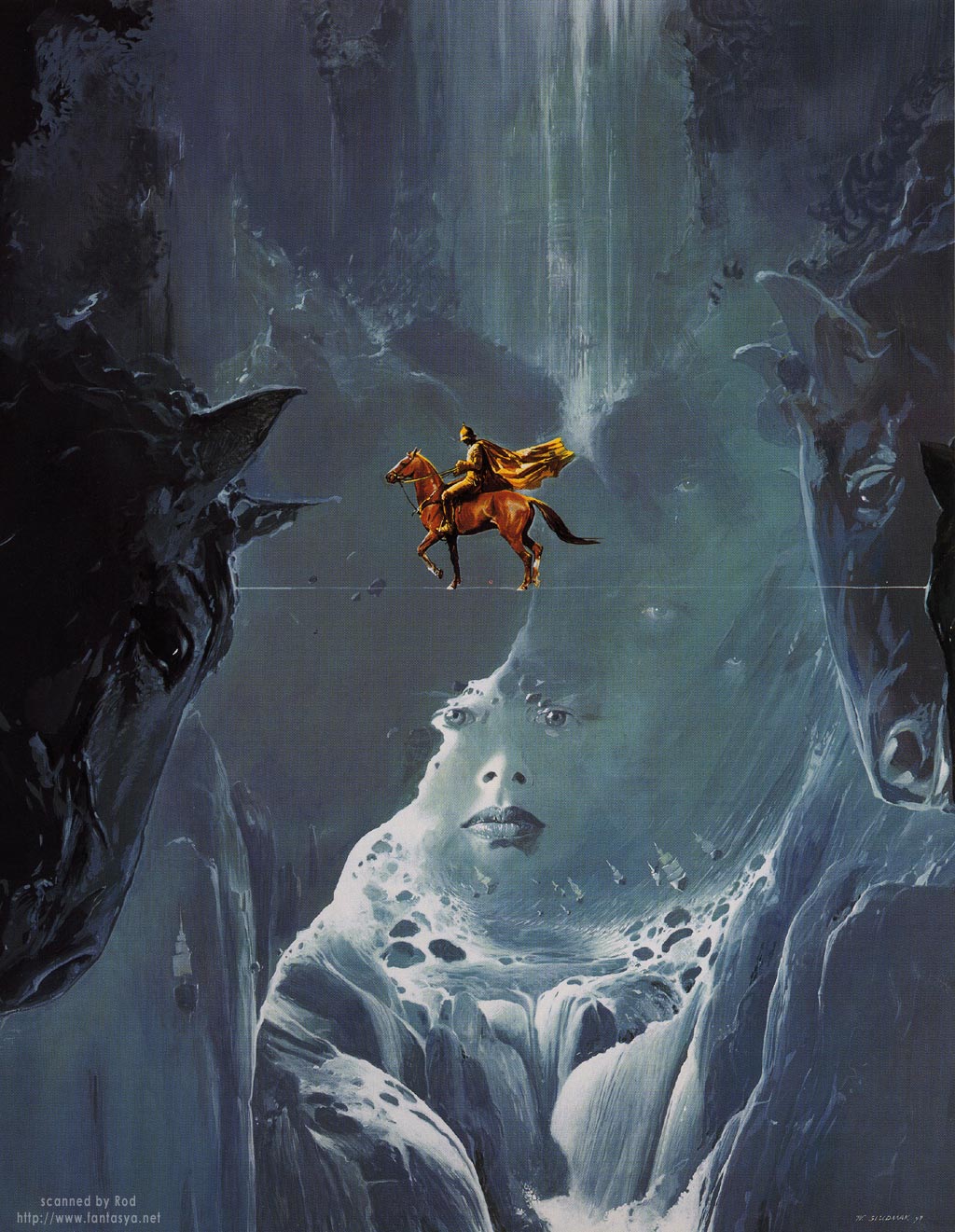 Like the best surrealists, a Siudmak cover teases its viewer with an elusive meaning. Recurring motifs include figures on horseback, disembodied faces, entire cities, and bison.