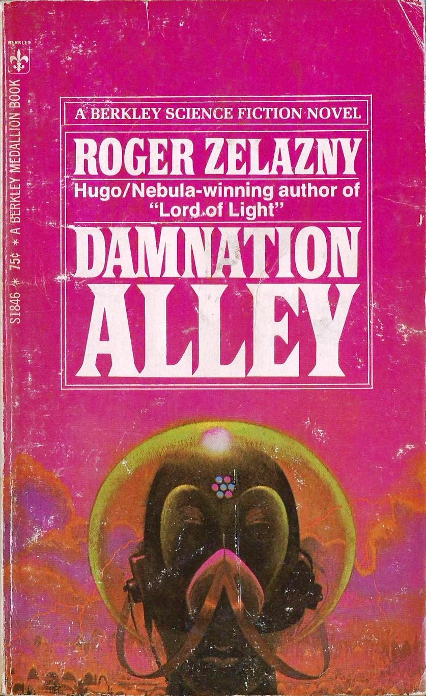 Paul Lehr has a gas-mask-inspired cover to a 1970 edition of Damnation Alley, a Roger Zelazny novel set in a post-WWIII nuclear wasteland.