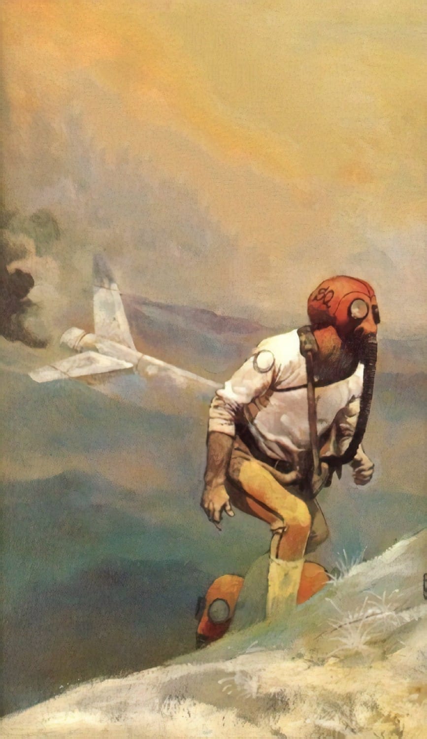 I was able to include another big French comics artist, Philippe Caza, who was very kind in our email exchange and refused any payment. Coincidentally, gas masks featured in the two Caza artworks in my book, so this is the perfect opportunity to feature them again. Here are Caza's illustrations for volumes one and two of the 1981 French translation of John Brunner's The Sheep Look Up.