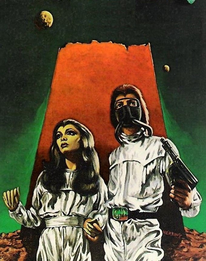 Gas masks are pretty universally accepted as creepy. More importantly, they have a unique appearance, which is all a cover artist really needs to turn them into a visual trope. For science fiction in particular, gas masks tend to crop up in two main contexts: Protection in a post-apocalypse setting, or as a form of spacesuit equipment.