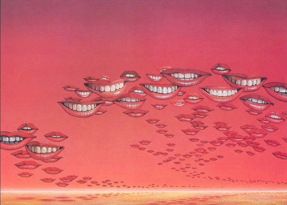 Mouths hold plenty of symbol value, so it's unsurprising that surrealist cover artists like Blanch got into the Giant Teeth game.