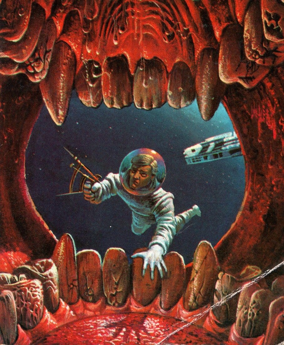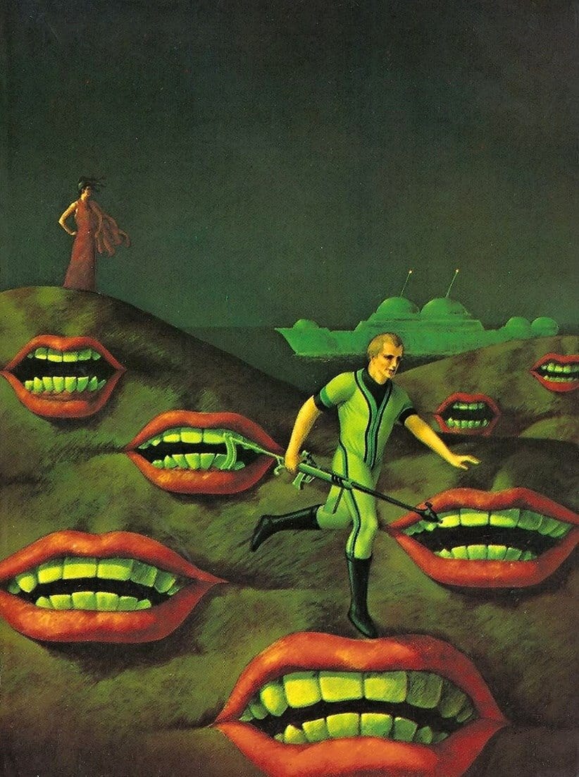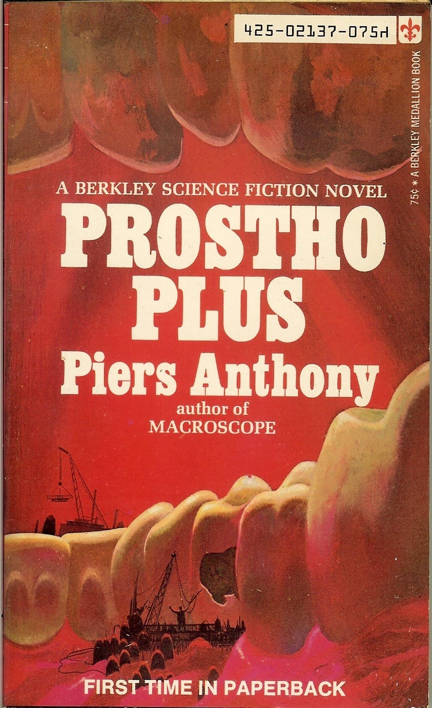 When it comes to giant teeth in retro science fiction cover art, all conversations must begin (and will basically also end) with Piers Anthony's Prostho Plus.
