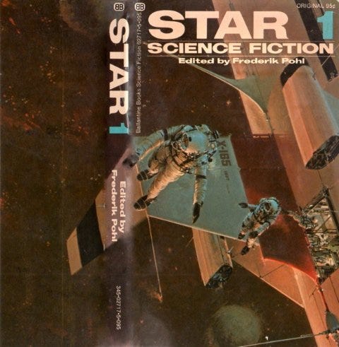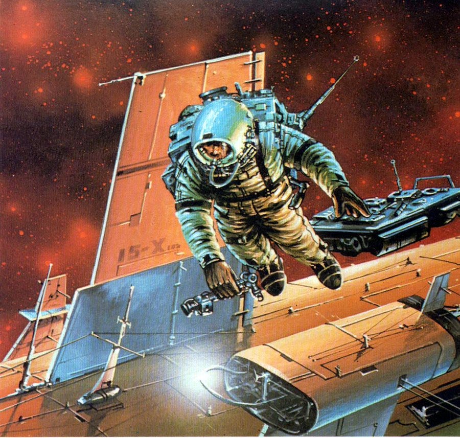 And here’s a 1972 John Berkey cover illustration for the Star 1 anthology. Pretty similar astronaut there! Right down to the arm band placement.