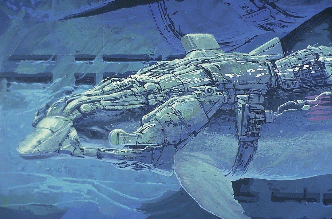 Design futurist Syd Mead even did a dolphin suit with this 1993 Johnny Mnemonic concept art.