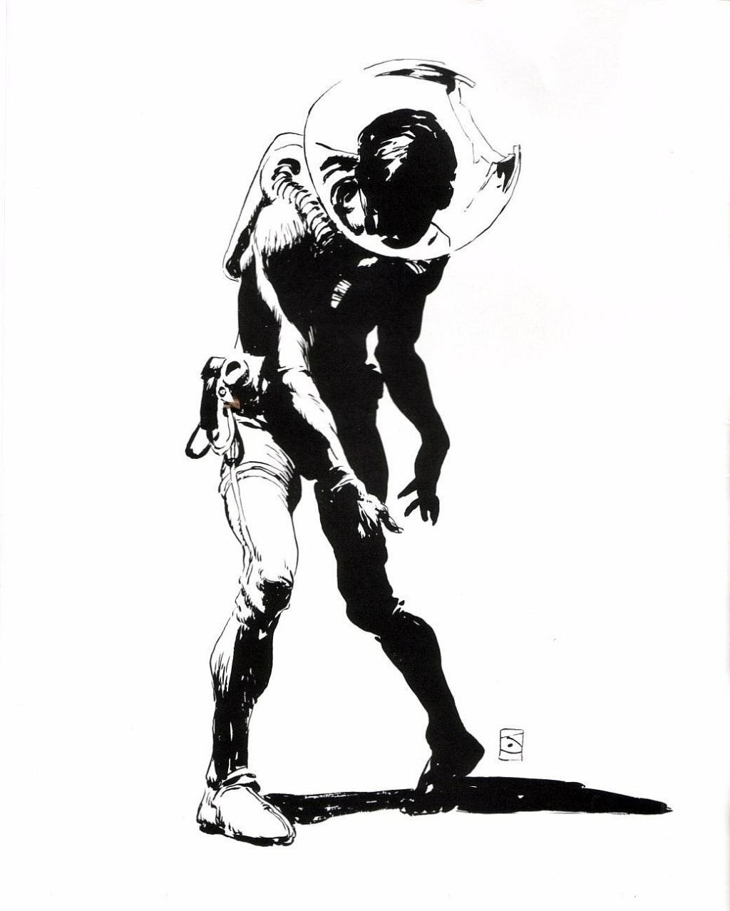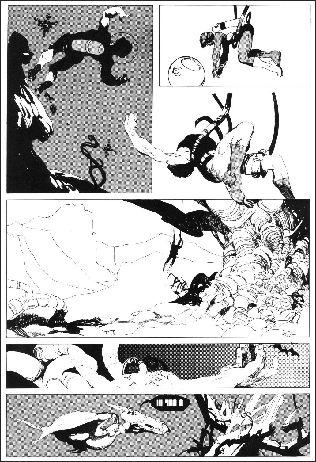 Jeffrey Catherine Jones loved creating black and white one-shot horror and sci-fi comics that are fun, stylish, and creatively plotted. But my art book is set up for individual images, not pages and pages of one comic, so I ultimately won’t be able to feature any of them.
