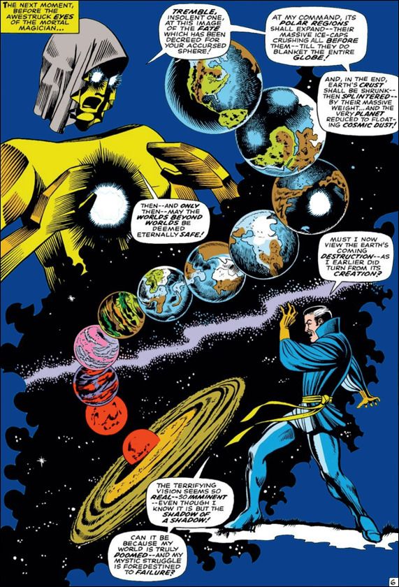 The article doesn't get into this, but since I have the chance, here's the 1967 Doctor Strange comic book panel that the album cover steals, from issue #158 of the comic book Strange Tales, illustrated by Marie Severin.