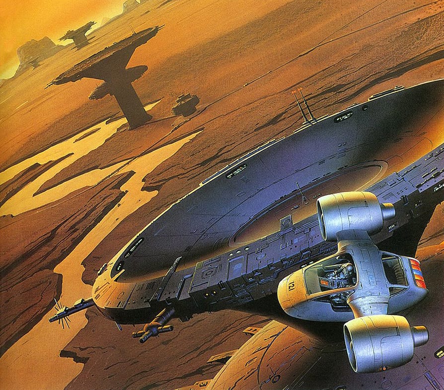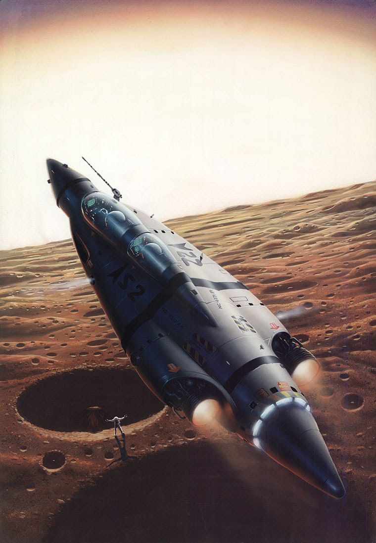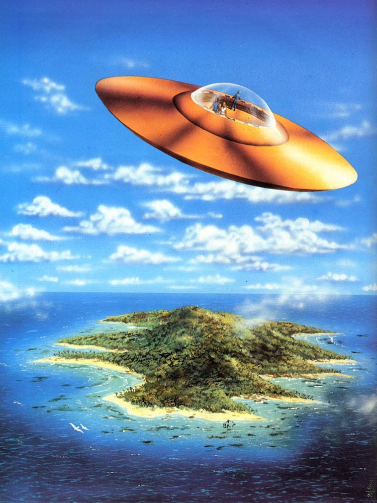 Tim White is the top fan of exterior views of spaceship cockpits by far. You already saw the header image for this post, but here's two more – and these are just the ones with islands in the background.
