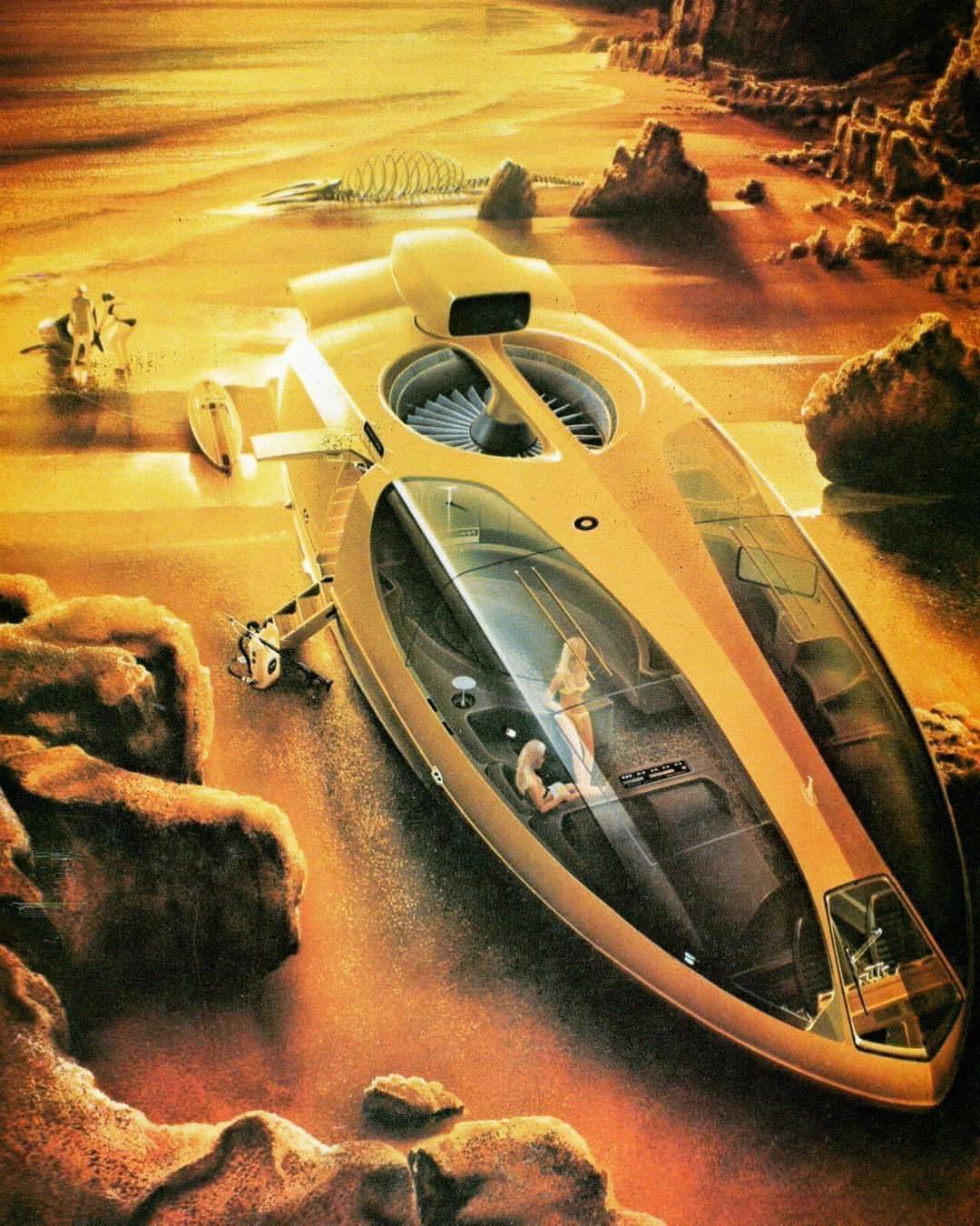 But there are examples from outside the UK as well. Shusei Nagaoka's 1975 illustration "Hovercraft for Leisure Use" is one of my favorites.