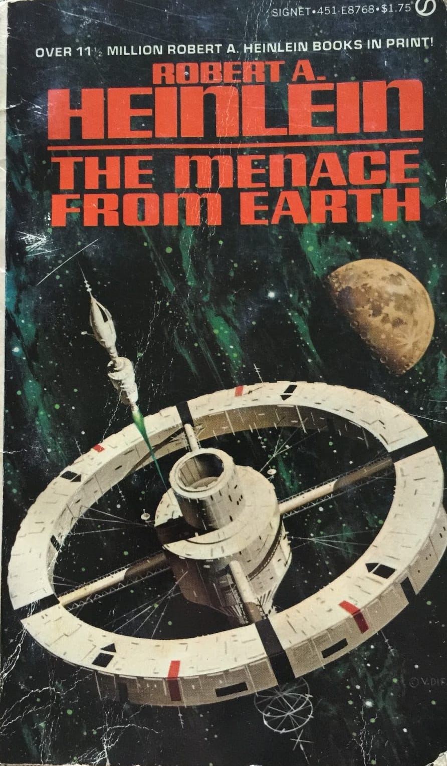 However, when I looked it up to find the source, I uncovered an interesting background: The original was done for a 1979 cover to The Menace from Earth, by Robert A. Heinlein, without any red crosses on it!