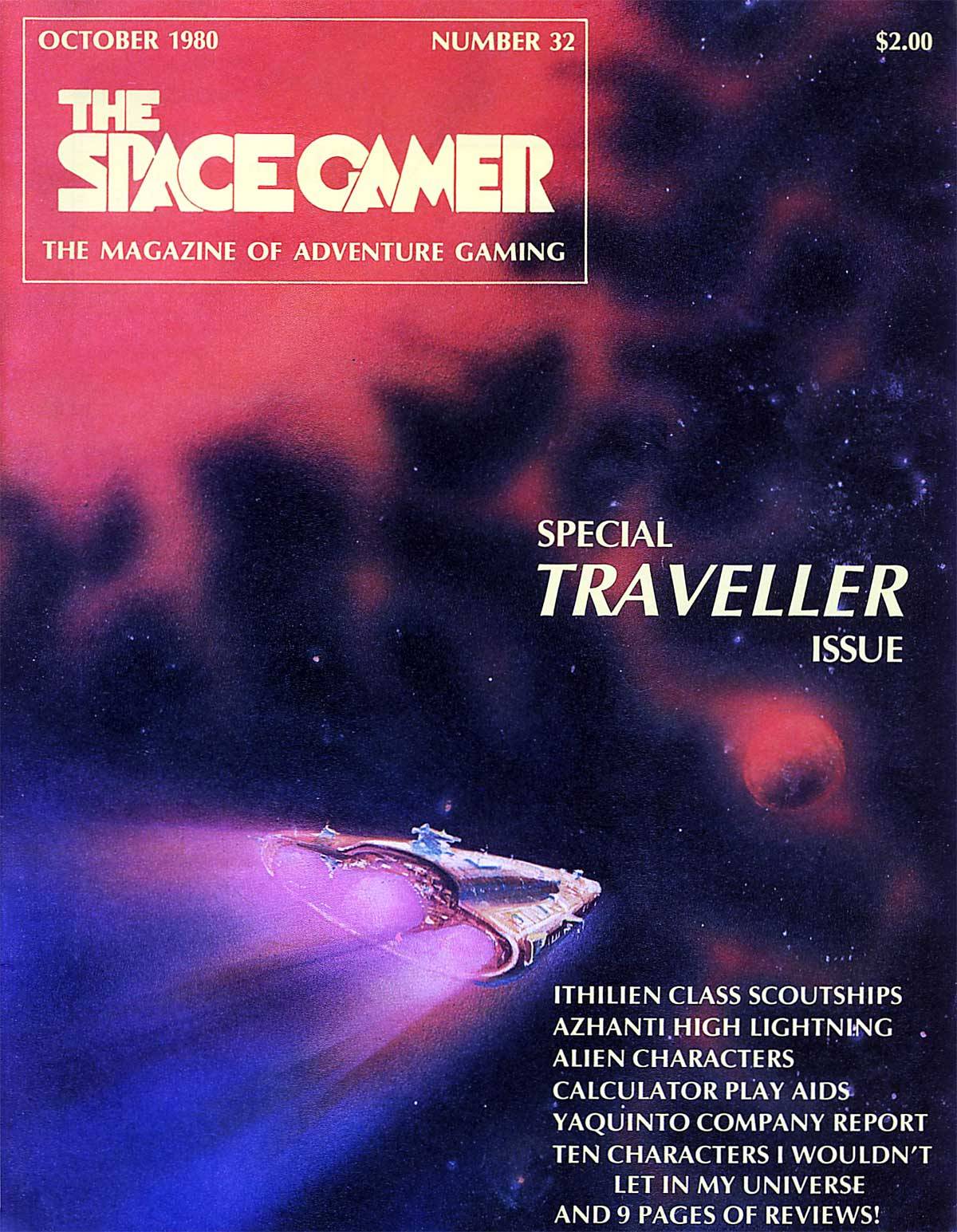 Sometimes keeping it simple makes for the most eye-catching image, as in Chris White's October 1980 cover for The Space Gamer #32. You might recognize the artist from his Dune board game cover, another winner.