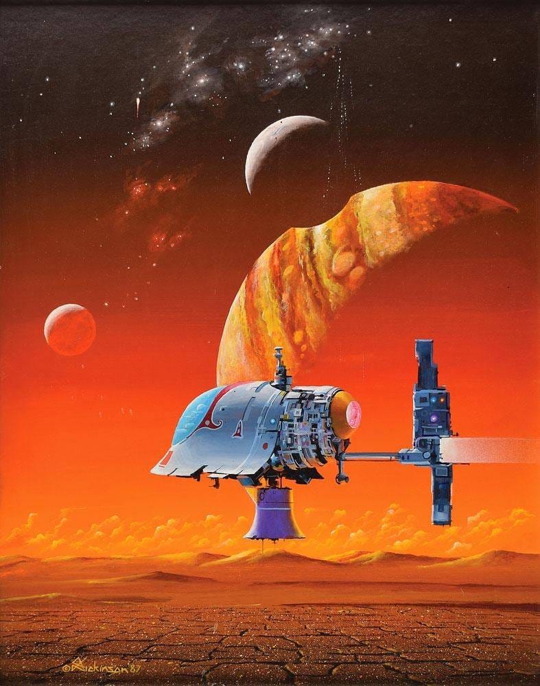 But avoiding those murky, painterly scenes can also be the right choice, if you can deliver on the opposite with bold detail and searing color choices – both of which Angus McKie is a master of. Here's his 1981 painting, The Planet Runner, to prove it.