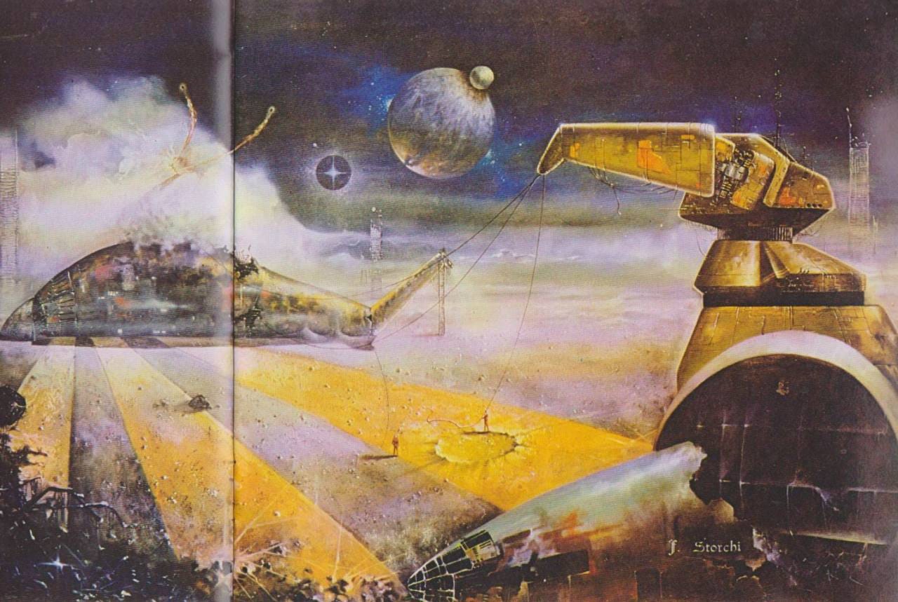 I'd also put the Peter Elson illustration at the top of this roundup in the "kinda weird" category. So is this final example, "After Attack," by Franco Storchi. I like art that feels like it has an entire unspoken story behind it, and this one definitely qualifies.