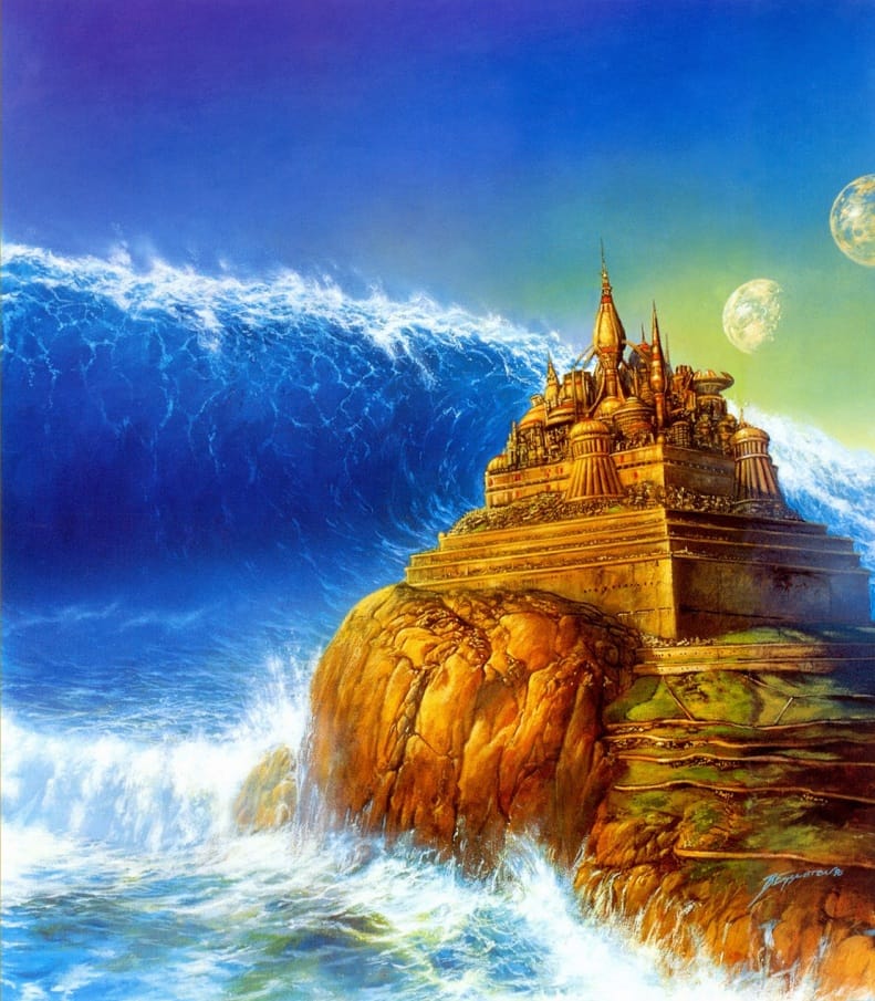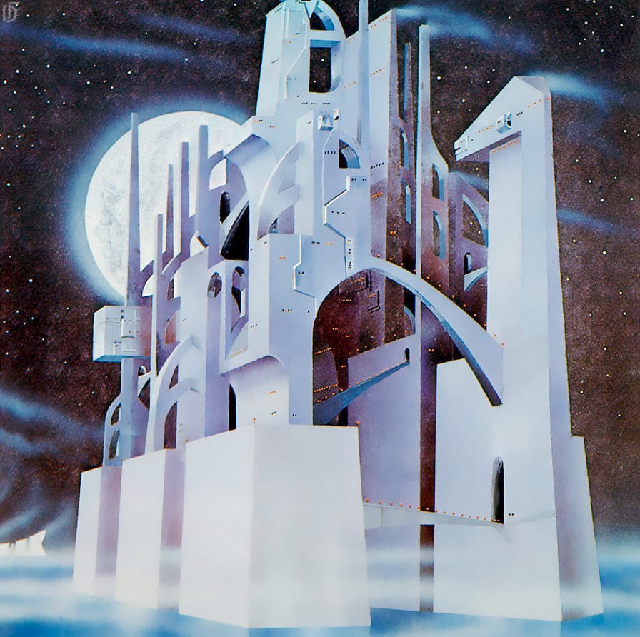 ...as well as the misty ocean fortress on his 1973 cover to Ursula K. Le Guin's The Left Hand of Darkness.