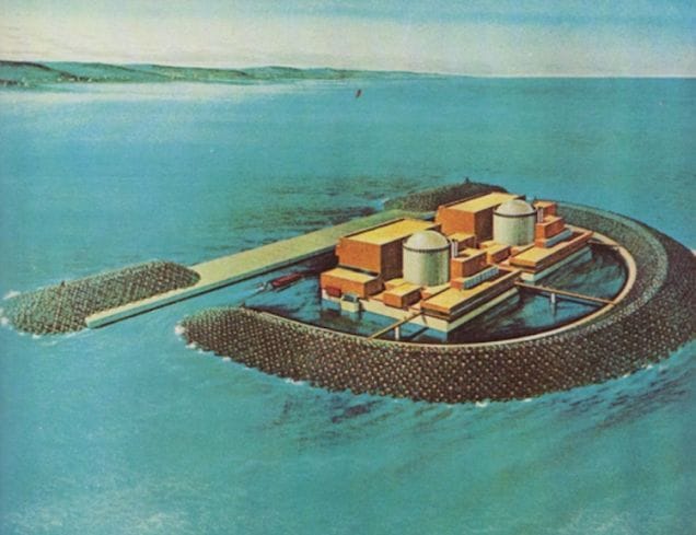 I don't think this image of an offshore nuclear power plant ever had an artist credit, but now even the source I found it on isn't available online outside the Wayback Machine. Looks cool, though.