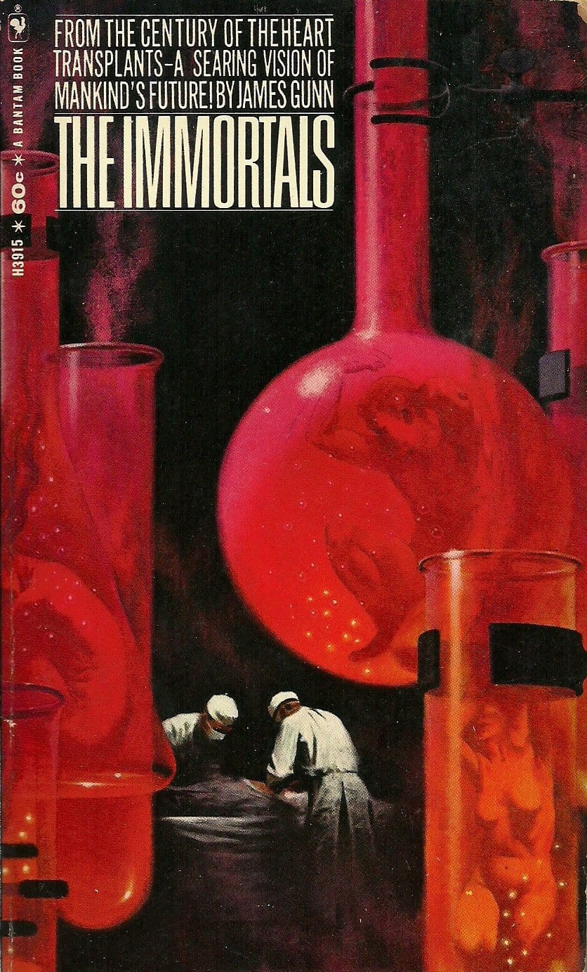 Also, I just stumbled on another great image I should have used, this uncredited (I'm guessing Dean Ellis) 1968 cover to The Immortals by James Gunn.
