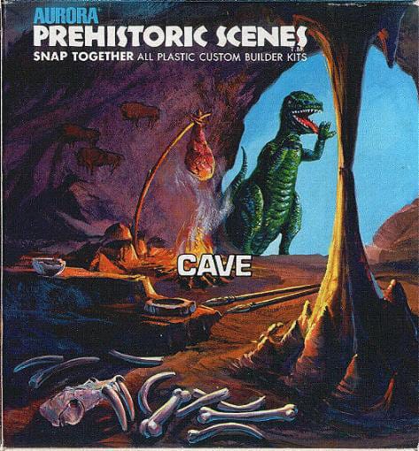 "I love how the Aurora Prehistoric Scenes models of my ‘70s childhood, with their epic box art, actively reinforced the idea that humans and dinosaurs battled & co-existed."