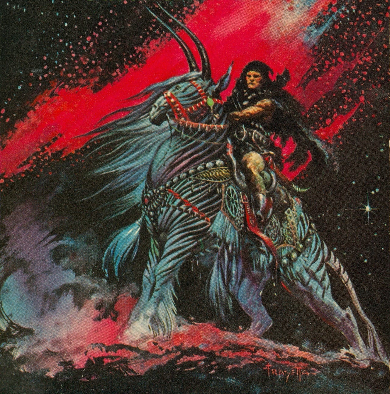 Speaking of Frazetta, I can't believe I forgot to include his incredibly metal 1964 cover art for Gardner F. Fox's Warrior of Llarn in my sci-fi steeds post!
