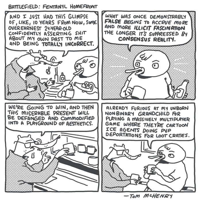 The model for the demon was Foglio's friend Greg Ketter, owner of Dreamhaven Books in Minneapolis, who was recently photographed walking through tear gas at age 70 while protesting the ICE invasion.