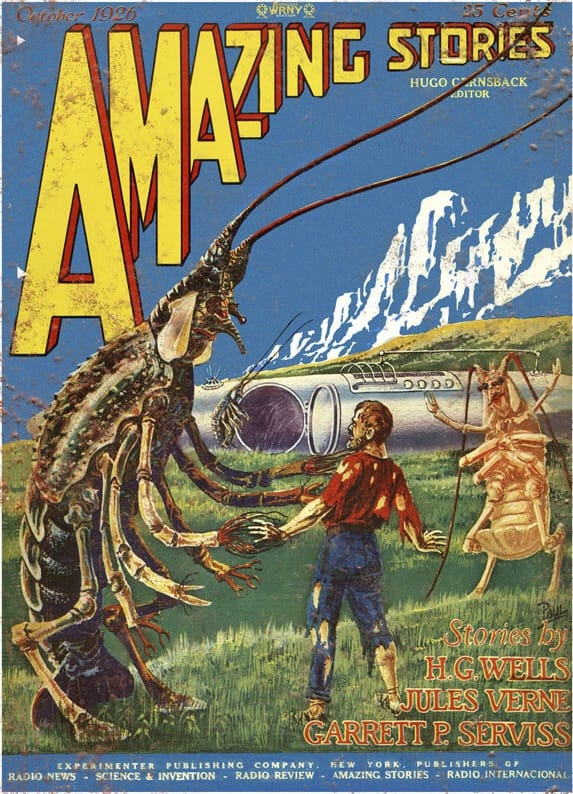 However! I've uncovered another one: An "October 2026" spoof of an old Frank R Paul Amazing Stories cover from 1926 featuring lobster aliens.