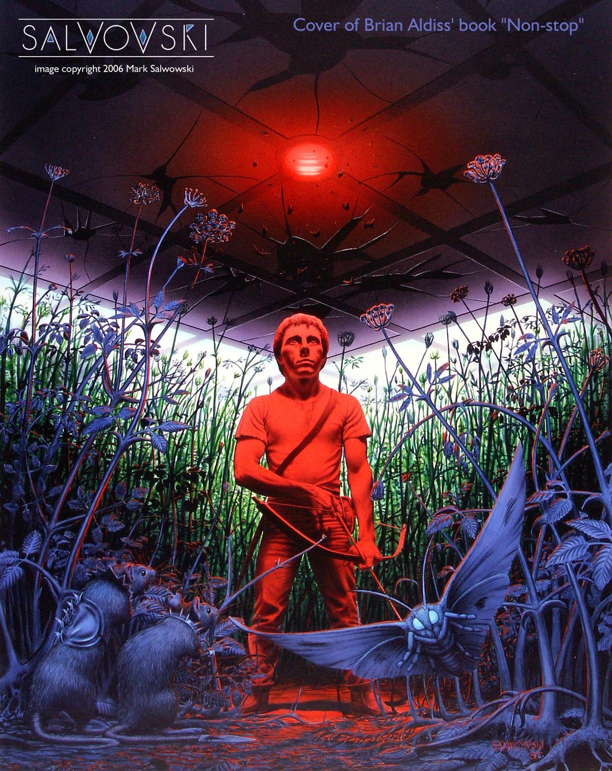 Mark Salwowski takes the overgrown ruins indoors with his 1987 cover to Brian W. Aldiss' Non-Stop.
