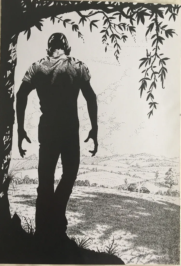 Terry Oakes has a whole page of artwork for sale. Here are three other works from the page that jumped out at me, including some of the previously mentioned black and white art, along with some background info on each from Frank.