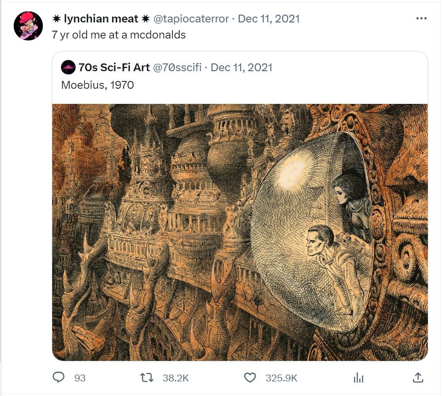 It'll be just an hour of me talking fast while showing you a bunch of cool sci-fi art and explaining all the elements that led up to the 70s sci-fi art era, the biggest artists who defined it, and the legacy that it has left ever since.